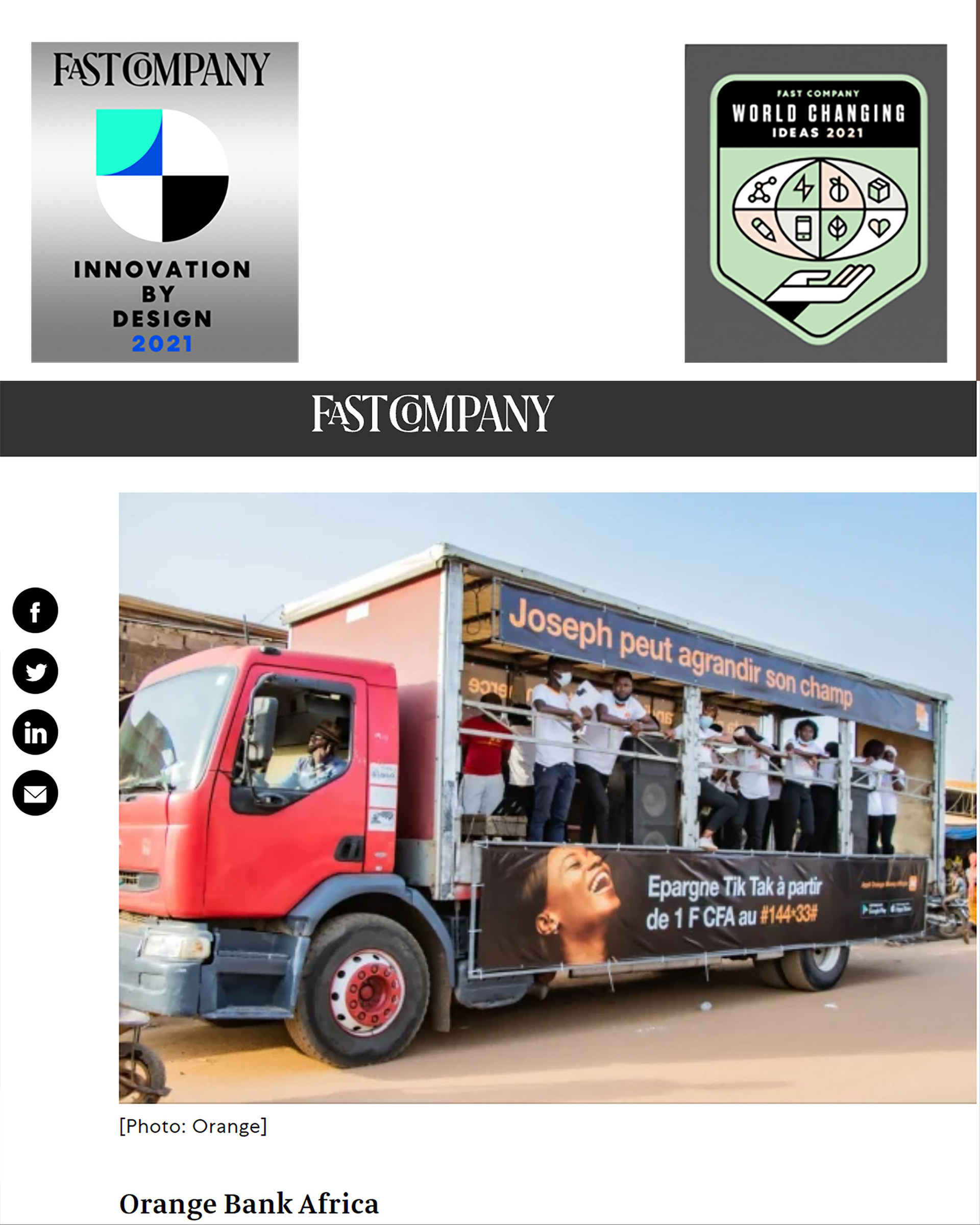 Fast Company honouree in ‘World changing ideas’ and ‘Innovation by design’ categories for functionality, originality, sustainability, depth of user insight, cultural impact and business impact.